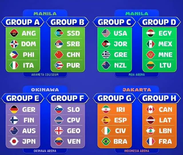 本届男篮世界杯将于8月25日至9月10日在印度、菲律宾、日本、印度尼西亚举行。美国男篮被分在C组,同组的对手有约旦、希腊和新西兰。而在本届世界杯中,美国男篮最大的对手将是法国、塞尔维亚、希腊以及斯洛文尼亚欧洲4大豪强。
