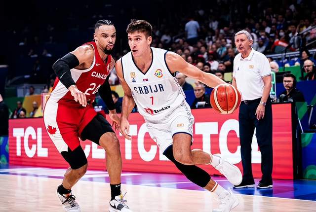 另外一场比赛中,塞尔维亚95-86击败加拿大则更加显得悬念不大。虽然加拿大球员的名气更加响亮,但面对内线更强、纪律性更好的塞尔维亚,加拿大几乎找不到任何办法。博格丹、米卢蒂诺夫、多布里奇等人联袂发挥,最终轻松取胜。塞尔维亚时隔9年重返世界杯决赛舞台,他们将同德国争冠。这也是时隔17年之后,决赛舞台再度出现两支欧洲球队对垒的场面,上一次还是2006年的西班牙对阵希腊。