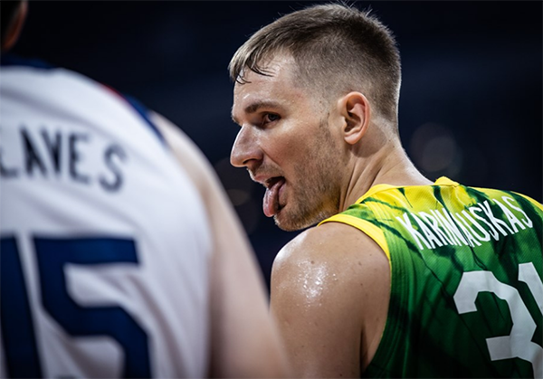 面对身材更加高大和强壮的立陶宛,里夫斯在防守端很吃亏,在上半场,里夫斯不仅被卡里尼奥斯卡斯强吃打成2+1,而且被吐舌挑衅。