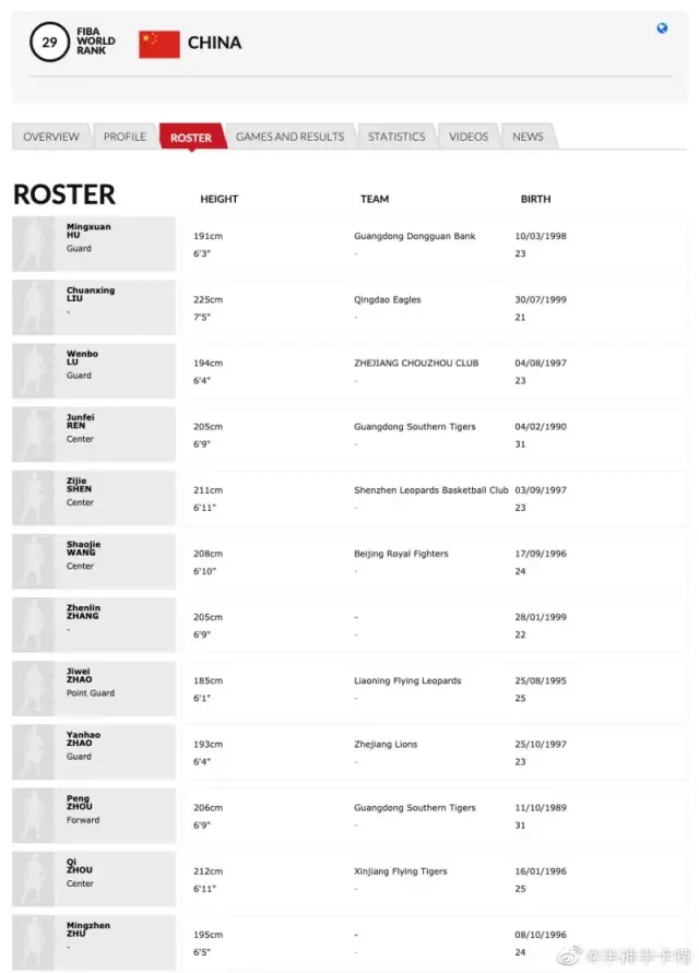 当然,事情也不是没有转机,这是FIBA官网给出的名单,最终还得等中国篮协官宣才能认定!