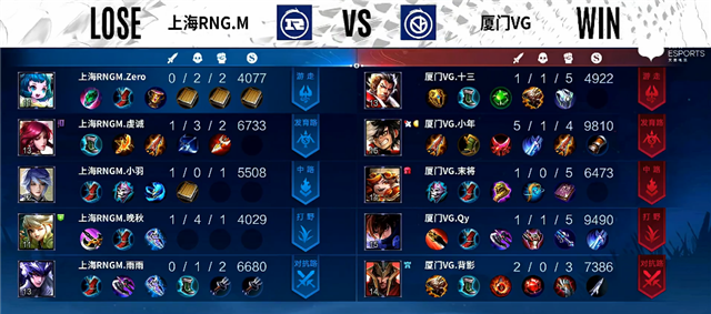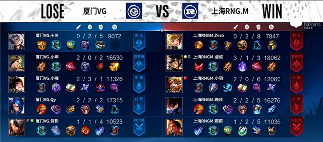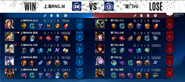 925直播吧讯 3月6日2022年KPL春季赛常规赛第二轮第一周第四日第一场,由厦门VG对阵上海RNG.M,以下是本场比赛快讯: