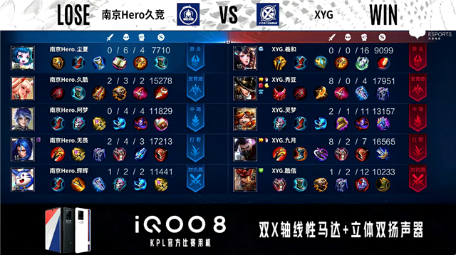 925直播吧讯 11月6日2021年KPL秋季赛常规赛第二轮第四周第四日第一场,由南京Hero久竞对阵XYG,以下是本场比赛快讯。