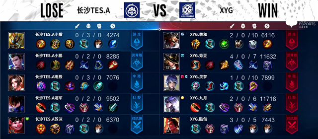 长沙TES.A禁用:鲁班大师、澜、苏烈、关羽