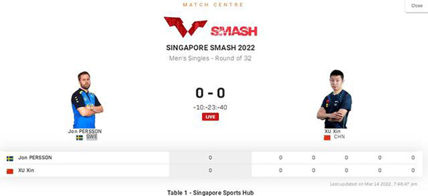 2022WTT新加坡大满贯男单第2轮 佩尔森vs许昕 全场录像回放