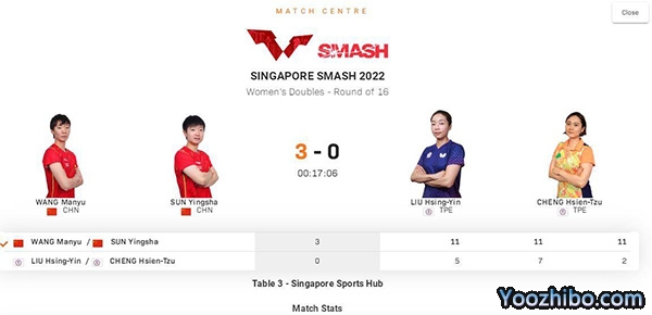 2022WTT新加坡站大满贯正赛女双1/8决赛 王曼昱/孙颖莎vs郑先知/刘馨尹 全场录像回放