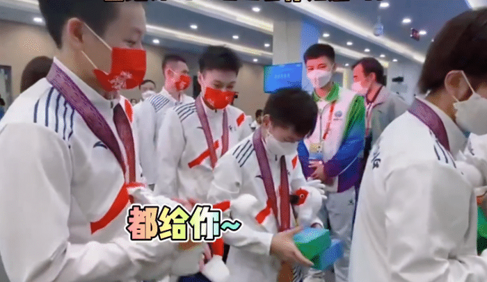 而场外的全红婵也是队宠,从北京飞往东京,落地接受采访的时候她的标签只是中国体育代表团参赛年龄最小的运动员。但是当10米跳台比赛结束之后,她创造了纪录和历史,总分打破纪录,成为了所有人关注的焦点,各大社交媒体的粉丝量接近千万,确实影响力巨大。