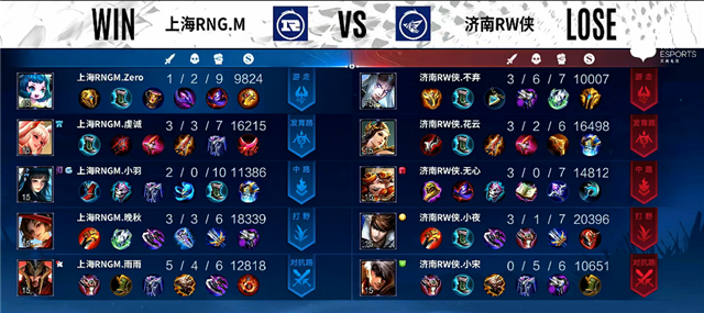 上海RNG.M禁用:鲁班大师、公孙离、鲁班七号、黄忠
