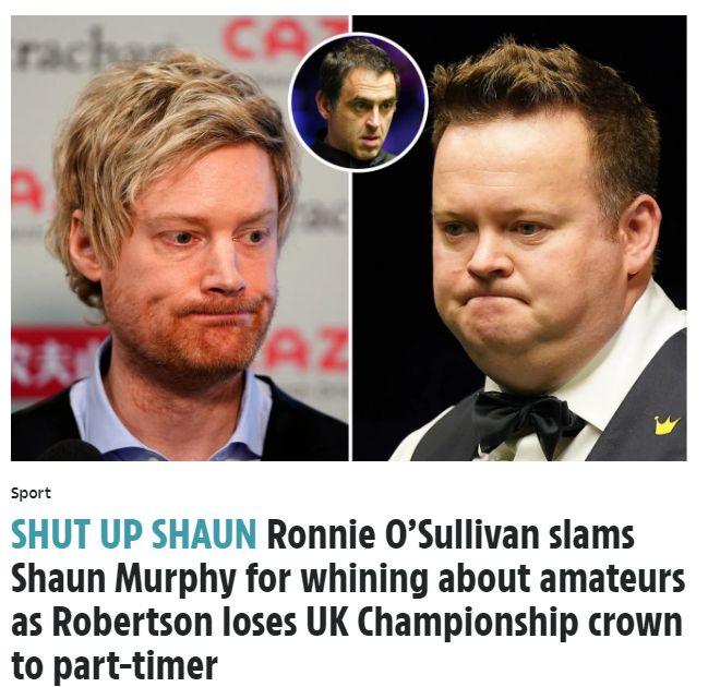 在首轮比赛当中,最让人感到意外的结果,莫过于肖恩-墨菲输给我国小将斯佳辉和卫冕冠军罗伯逊输给阿斯特里的比赛,两位都是世界前十级别的名将,但他们输球之后可一点都没展现出风度,墨菲在被逆转之后直言像斯佳辉这样的业余选手就不该参赛,这对他们职业选手很不公平。
