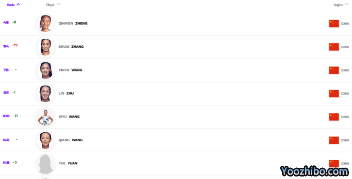 中国选手方面,郑钦文凭借在瓦伦西亚站夺冠的160积分,排名上涨8位来到第46位。郑钦文也成为中国网坛新一姐,而她的年级甚至未满20岁。张帅排名下滑13位,来到第54位。王欣瑜第76位,朱 琳第95位。闯入瓦伦西亚站决赛的王曦雨,排名升至第100。