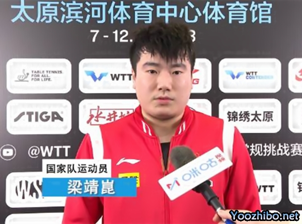 925直播吧讯北京时间11月11日,2023WTT常规挑战赛太原站男单1/4决赛向鹏vs梁靖崑,国乒队员梁靖崑以3-2险胜队友向鹏,晋级下一轮。比分为9-11、11-9、11-4、8-11、11-8。