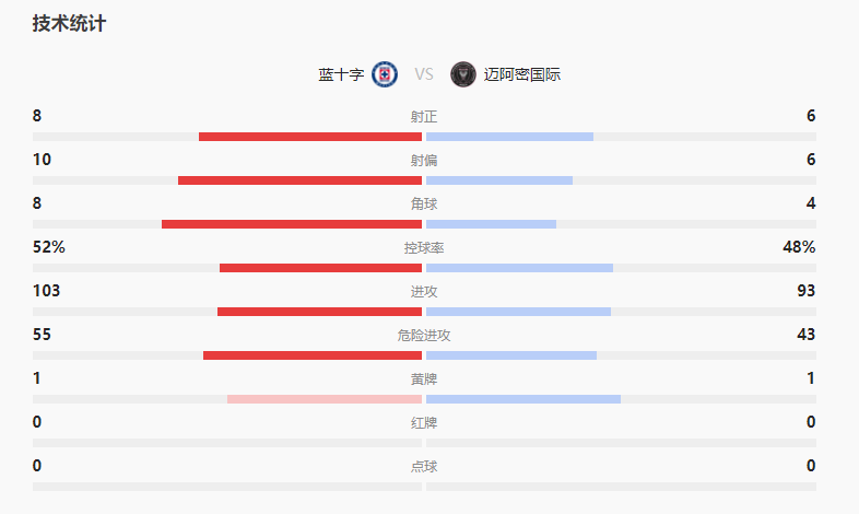 最终迈阿密国际2-1蓝十字。