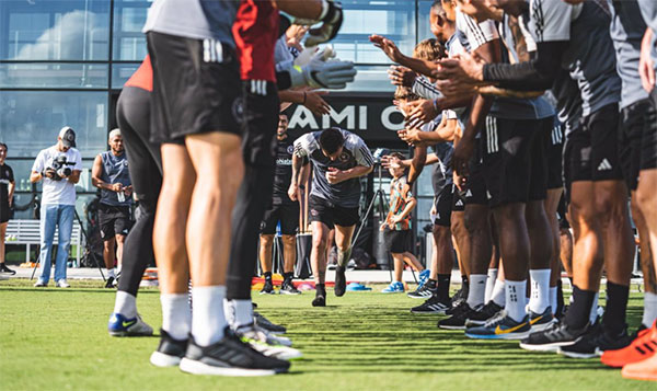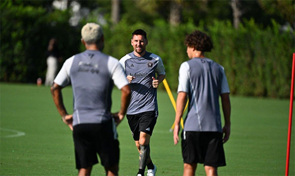 美国职业联赛官方也在社交媒体上晒出了梅西首次公开训练的照片,同时还配文:笑容满面、认真专注。