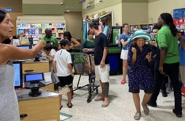 梅西逛超市!美国球迷太幸福,老太太表情抢镜,拖鞋T恤很惬意