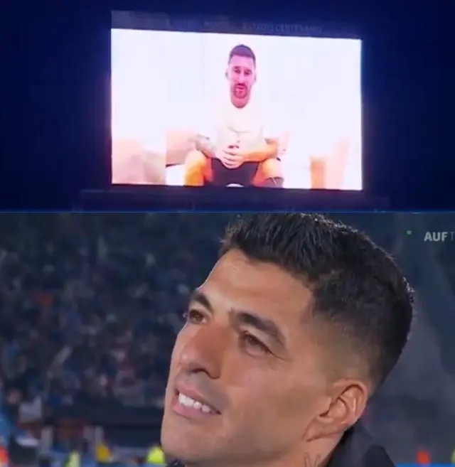 赛后,球场播放短片。梅西为苏亚雷斯送上祝福:你好,胖子。在这个重要而特殊的日子里,向你和你的家人、乌拉圭人民致敬,感谢你为你的国家队和你的国家所做的一切。