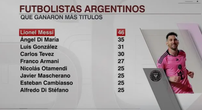 925直播吧讯 迈阿密3-2击败哥伦布机员,夺得美职联常规赛冠军。TNT阿根廷晒出足坛冠军前十的球员: