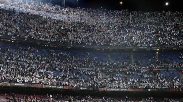 值得注意的是,本场比赛,有超过3万名法兰克福球迷涌入了诺坎普球场。由于诺坎普球场上座人数接近8万,这也意味着客队球迷接近占据了一半的人数,诺坎普的看台也罕见变成白色的海洋。据悉,这些法兰克福球迷是通过非官方渠道、转售,以及从德国以外其他地方购买的方式拿到了现场观战的球票。许多喝醉了的法兰克福球迷,还与巴萨死忠相邻而坐。