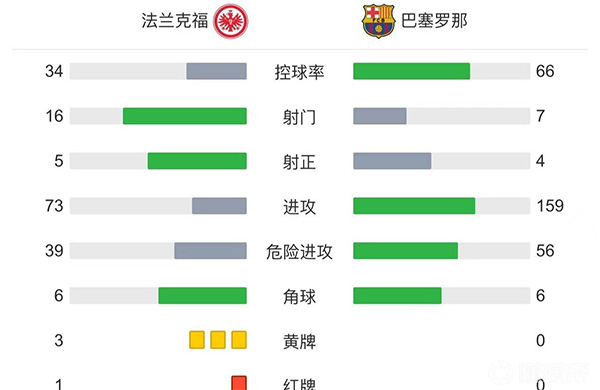 全场比赛结束,最终巴塞罗那1-1战平法兰克福。