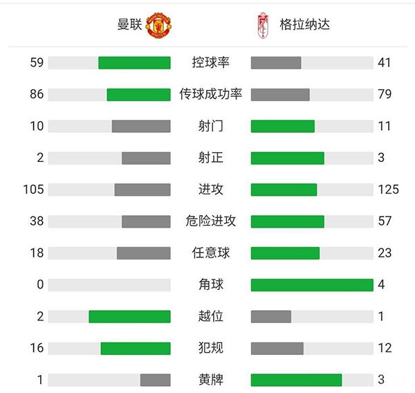 第6分钟,曼联取得领先,特莱斯左侧传中,博格巴禁区内头球摆渡给无人盯防的卡瓦尼,卡瓦尼左脚侧身凌空抽射破门,曼联1:0格拉纳达!