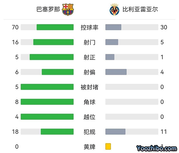 全场结束,最终巴萨3-0完胜比利亚雷亚尔。