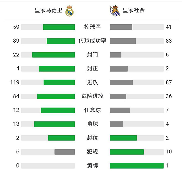 最终全场比赛结束,皇马1-1战平皇家社会。