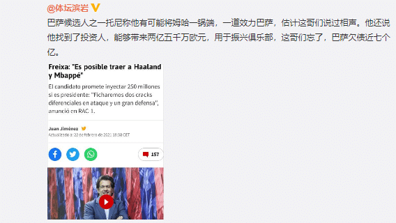 大放厥词!巴萨候选人豪言或将签下姆巴佩哈兰德,名记:说过相声