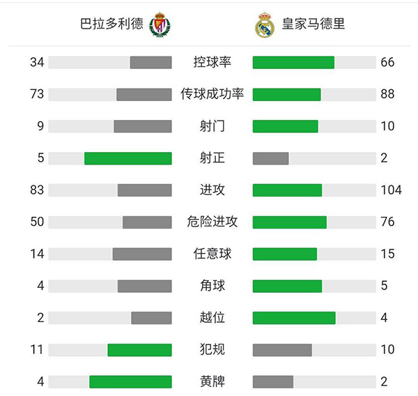 全场比赛结束,皇家马德里客场1-0小胜巴拉多利德。
