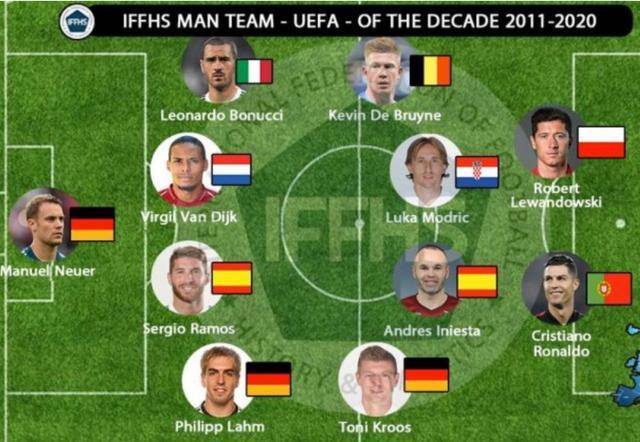 IFFHS评过去十年欧洲最佳阵:C罗、莱万领衔