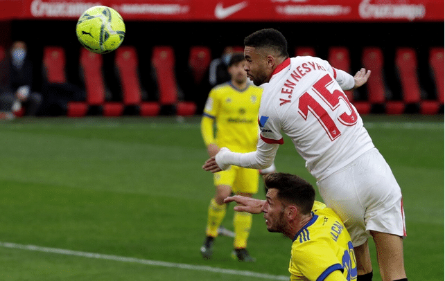 此役3-0大胜加的斯,作为欧联杯6冠王的塞维利亚表现得非常强势,恩内斯里在比赛第35分钟补射破门,第39分钟头球破门,第62分钟抓住马克-巴罗的解围失误再次头球破门,从而将比分锁定为3-0。全场塞维利亚恐齐UK高达恐怖的80%,射门达到15次,其中7次射正,等于完全摁着加的斯在地上摩擦,完成帽子戏法的恩内斯里毫无悬念成为了全场比赛最佳,拿到了本场比赛最高的比赛评分10分,堪称完美,然后是制造2球的苏索,他拿到了9分,恩内斯里的第一球是苏索射门击中立柱之后的补射,第二球是苏索的定位球直接助攻破门。