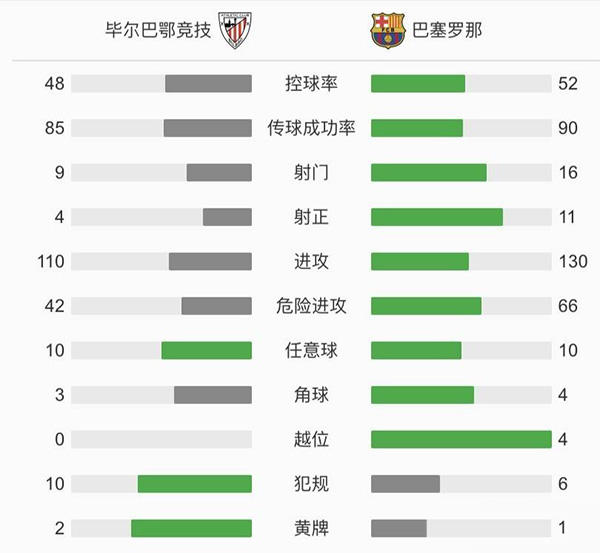 巴塞罗那3-2毕尔巴鄂竞技 梅西双响佩德里传射
