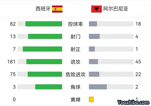 全场比赛结束,西班牙主场2-1险胜阿尔巴尼亚。